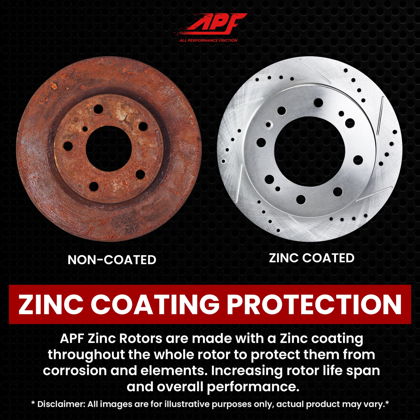 High-Performance Zinc Coated Drilled and Slotted Brake Rotors With Carbon Fiber Brake Pads